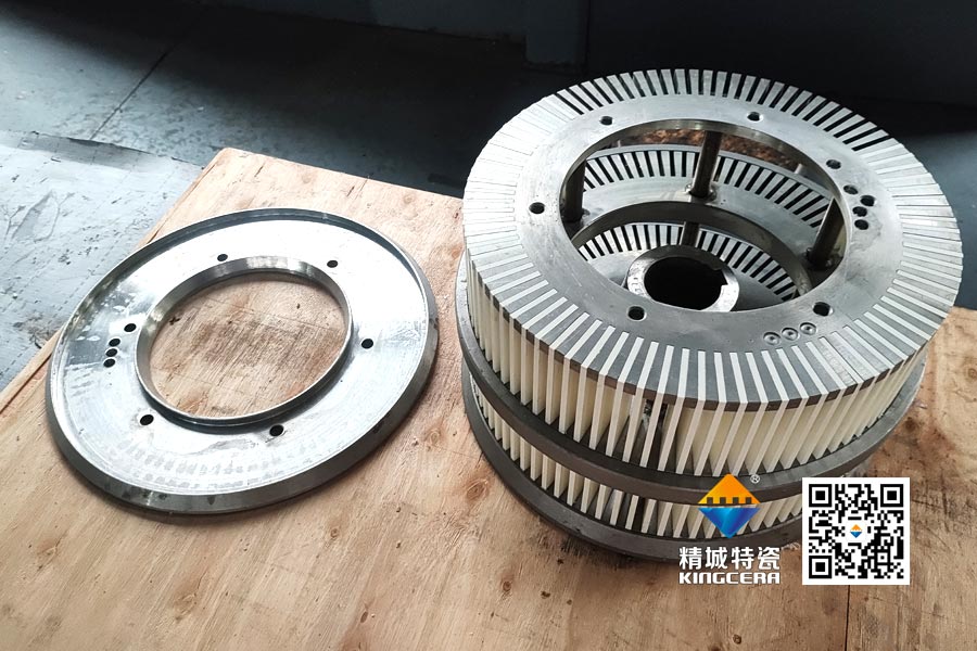 對于轉速要求更高(8000轉/分鐘)的鋰電粉體分級設備,精城特瓷推出分體式貼瓷分級輪。采用ARZ陶瓷片,經過精密研磨,與金屬基體實現優異貼合與適配,裝配后整體效果好,兼顧陶瓷的耐磨性與金屬結構的承載強度。