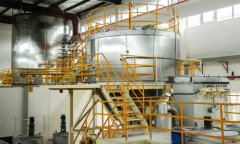 壓力噴霧干燥的原理是空氣經(jīng)過(guò)濾和加熱后進(jìn)入干燥器頂部的空氣分配器,使得熱空氣呈螺旋狀均勻地進(jìn)入干燥室。料液經(jīng)塔體底部的高壓噴槍霧化成極霧狀液珠,與熱空氣并流接觸,在極短的時(shí)間內(nèi)可干燥為成品。