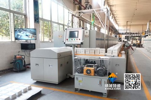 精城特瓷高溫雙道循環推板隧道窯正式投產,通過半自動化系統替代人工推板,顯著提升生產效率和產品優等率。窯爐采用多測溫點精準控溫設計,優化能耗與工藝穩定性。這一變革不僅縮短燒制周期,更為高端訂單提供精準復現