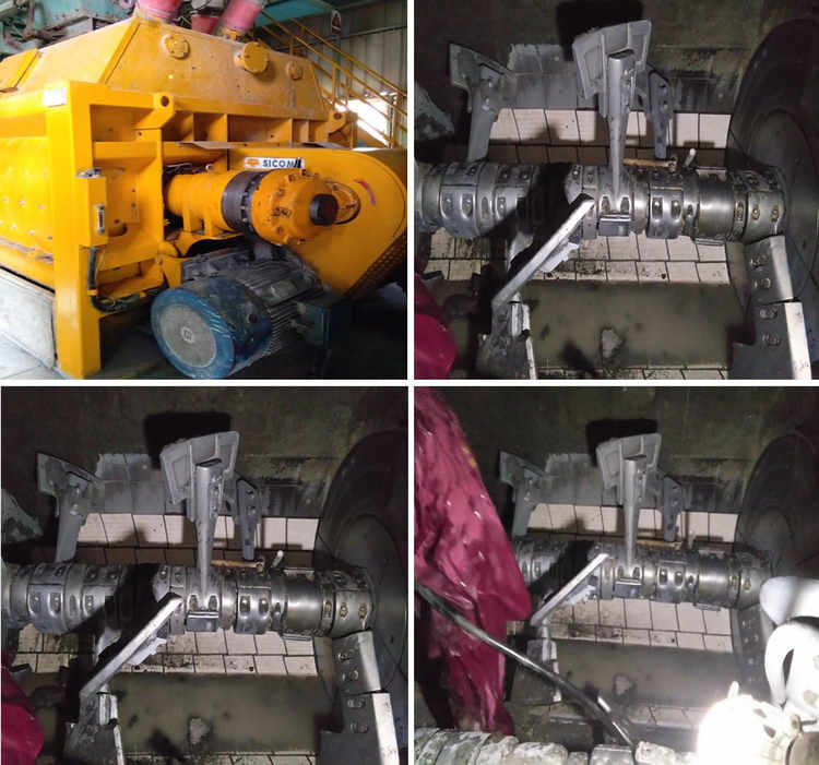 在這期間,針對客戶提供的建議我們反復溝通,按照客戶的要求進行設計,客戶收到貨后非常滿意。2017年10月底我對客戶進行了售后回訪,去到現場實地了解攪拌機耐磨陶瓷襯板的使用情況,正好碰到客戶停機檢修,清理混凝土,客戶對我們的襯板使用情況非常滿意,希望接下來能進行深度的合作!以下是我在現場實拍的一些圖片: