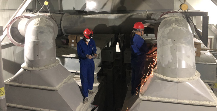 此次我司的安裝任務是某制砂廠φ1100、φ650除塵管道的彎、直管易磨損處安裝耐磨陶瓷和檢修平臺的搭建。由于海口市天氣炎熱,日平均氣溫均達40℃以上,停機時間短且在距離地面20多米以上的高空進行焊接作業,給現場施工帶來了不小的挑戰。于是我司便先安排制作二班班長趕赴施工現場,勘察作業環境及是否能夠完成此次檢修平臺的搭建工作。當制作二班班長到達某制砂廠時,已是當日下午5點多了,客戶單位得知我司派人過來了,便安排廚房多炒幾個美味的菜品送至員工宿舍給我司(外)機械、安裝隊員吃。而當客戶單位老板得知我司只安排一個人過來后,臉色轉變,立即拿起手中的手機與我司業務經理進行聯系,質問我司這是什么意思?這就是我司所展現出來的實力?我司這樣的服務能力還怎樣合作下去?......當天晚上,我司制作二班班長把某制砂廠的實際情況匯報給了楊總。第二天,楊總便立即組織(外)機械、安裝人員召開會議,會議強調:既要保證人員的生命安全,又要在規定時間內“保質、保量”的完成任務。當天,我司(外)機械、安裝隊員安全到達海口市美蘭機場后,未做停留,立即趕往某制砂廠。到達某制砂廠后,我司(外)機械、安裝隊員一同前往施工現場,勘察作業環境,核實工作任務,預估完成時間。