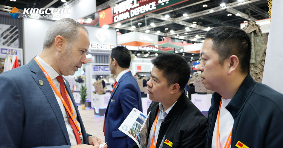 防彈陶瓷產品參加了此次盛會。在為期五天的展會期間,兩位同事拜訪了俄羅斯、捷克、泰國、埃及、印度、美國、約旦、希臘、土耳其、安圭拉、烏茲別克斯坦、北馬其頓共和國等二十多家做防彈插板的公司。與他們進行了深入的技術探討和業務交流。國外客戶對我公司生產的防彈陶瓷產生了濃厚的興趣。期待后期進行深入合作。